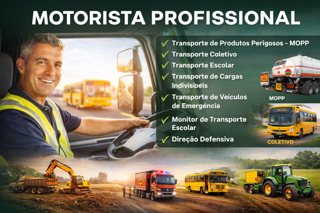 O curso de Motorista Profissional é voltado para condutores que desejam se destacar no mercado com certificações importantes e treinamento especializado.